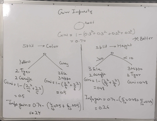 Binary case: Gini(S) = 1 - (p0^2 + p1^2)